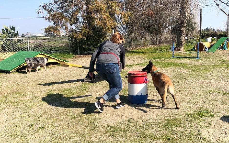 - Weaving, if you and your dog love tricks or more of a challenging exercise – utilize weaving. It is a great stretch for the legs, core and spine!