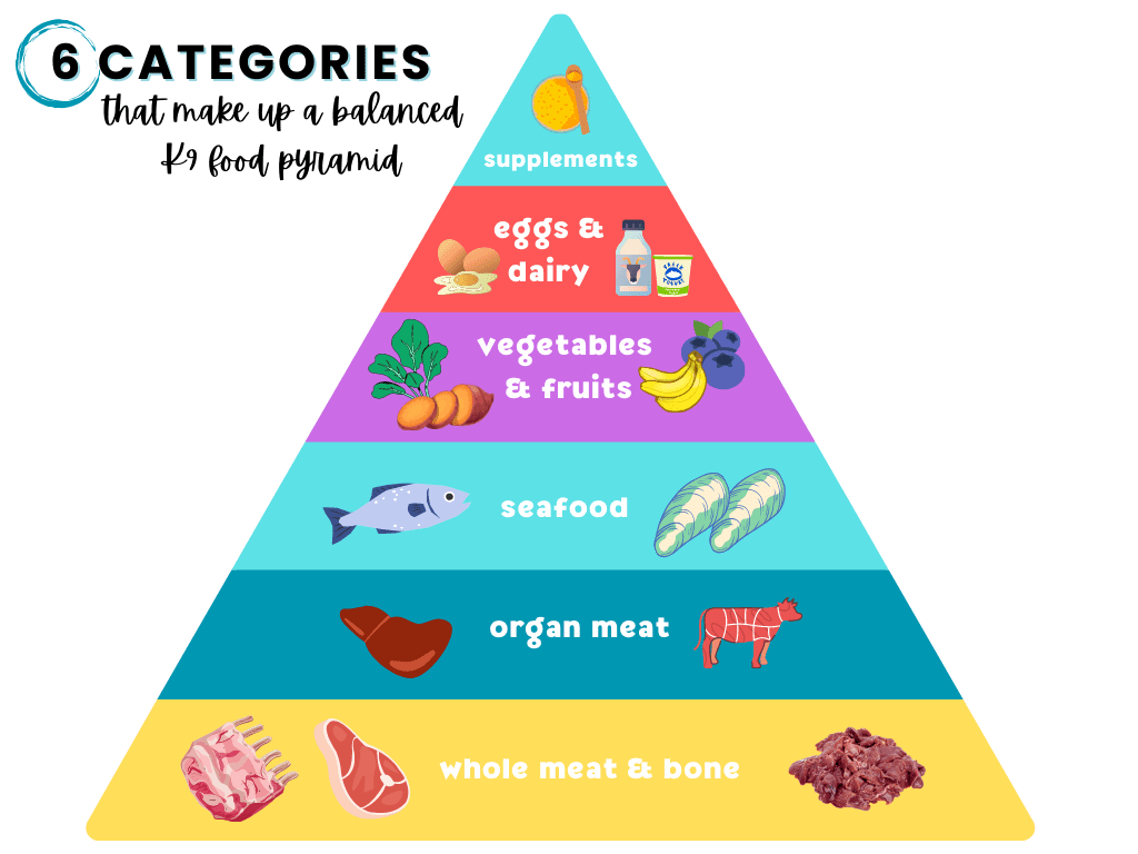 If you feed a raw diet, it is crucial to ensure that you are feeding all 6 categories to create a balanced diet. If you feed a commercial raw food, meaning that you purchase your frozen raw, double check the ingredient list so that you know your dog is consuming a balanced diet.